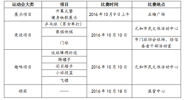 乒乓球、象棋快棋及趣味项目比赛地点:元和市民文体活动中心