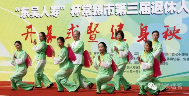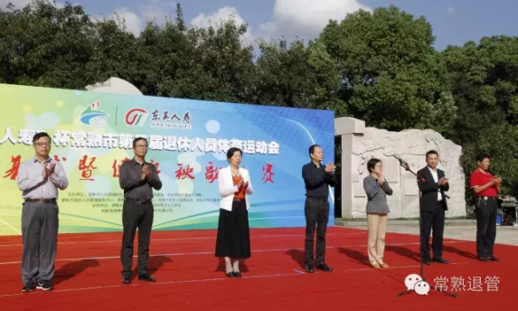 市政协副主席、体育局局长吴国华先生宣布本届运动会开幕。市人社局党委书记、局长廖瑞娟女士在开幕式上致辞,她说,组织开展退休人员体育健身运动,是弘扬体育精神、提升退休人员生活质量和生命质量,增强他们体质的重要途径,也是退休人员社会化管理的重要内容。希望通过本届运动会,将全民健身的理念传递到每一个社区、每一个村、每一位退休老人,使体育运动成为更多退休老人的生活方式,成为常熟这座城市永不落幕的亮丽风景。东吴人寿陈加丰先生为运动会致贺词,并祝愿全市38万退休人员身体健康,节日快乐!开幕式由市人社局副局长沈军先生主持。